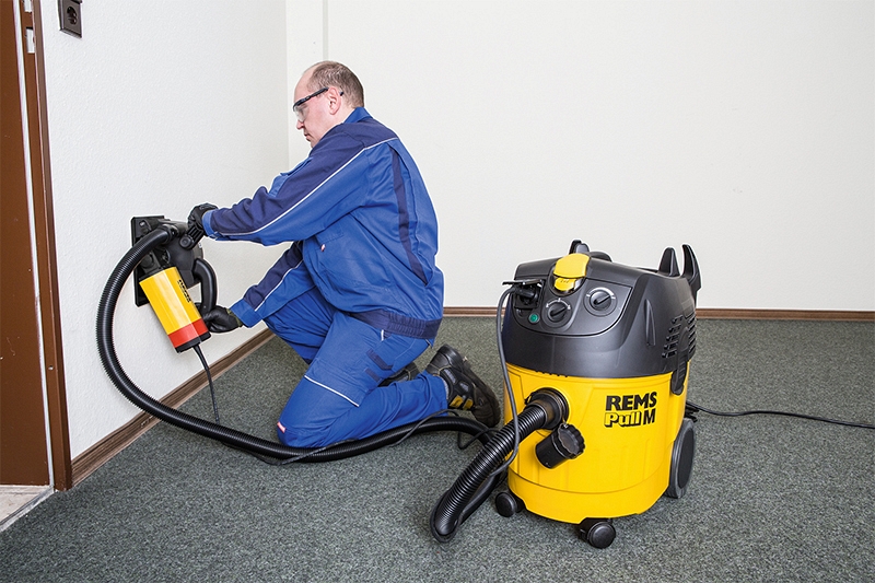 При работе с минеральными строительными материалами, например, бетоном, железобетоном, кирпичной кладкой, бесшовным полом, образуется большое количество кварцсодержащей минеральной пыли (мелкой кварцевой пыли), опасной для здоровья. Вдыхание мелкой кварцевой пыли опасно для здоровья. Согласно EN 603352 69 предписано использовать для отсасывания опасной для здоровья пыли с граничными параметрами взрывоопасности / граничным параметром > 0,1 мг/м³ как минимум безопасный пылесос для класса пыли M. Учтите национальные предписания. Rems Pull 2 M, пылесос для сухой и влажной уборки, класс пыли M.