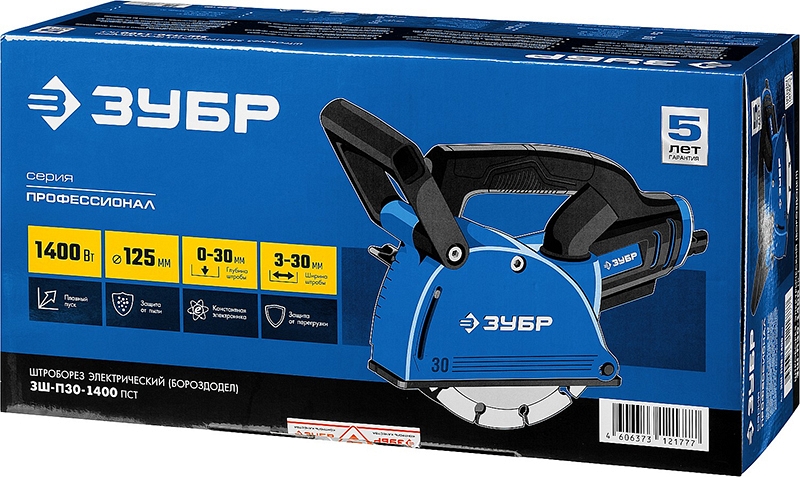 Штроборез Зубр Профессионал ЗШ-П30-1400 ПСТ (Zubr Professional ZSH-P30-1400 PST) – профессиональный инструмент для выполнения штроб глубиной до 30 мм и шириной 3 – 30 мм в легких и средних бетонах. Оснащен всеми современными электронными системами (плавный пуск, константная электроника, защита от перегрузки) для безопасности и большей производительности. Полная пылезащита всех узлов и комплектующие высокого класса гарантируют надежность.