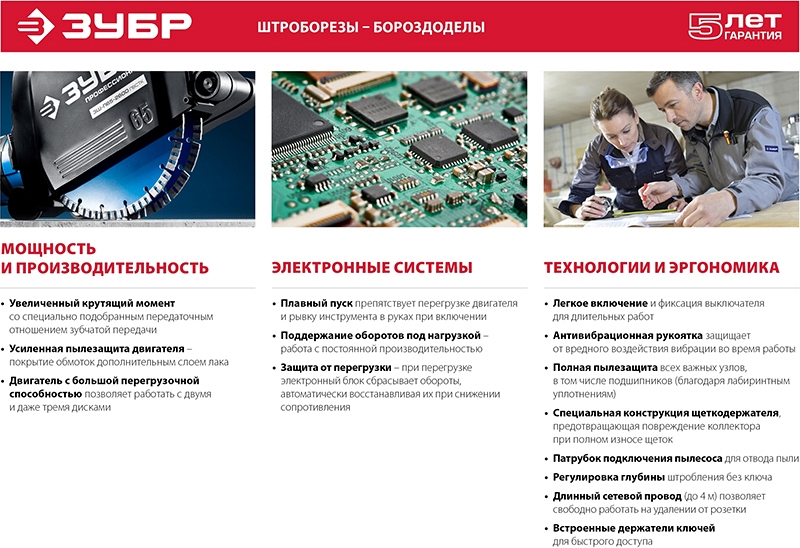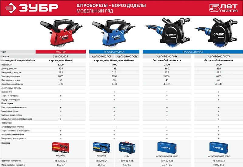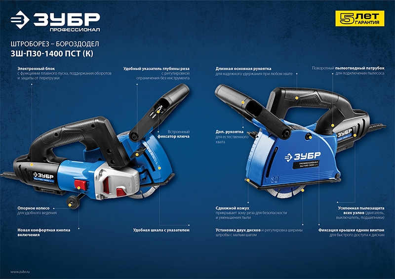 Преимущества штробореза Зубр Профессионал ЗШ-П30-1400 ПСТК: